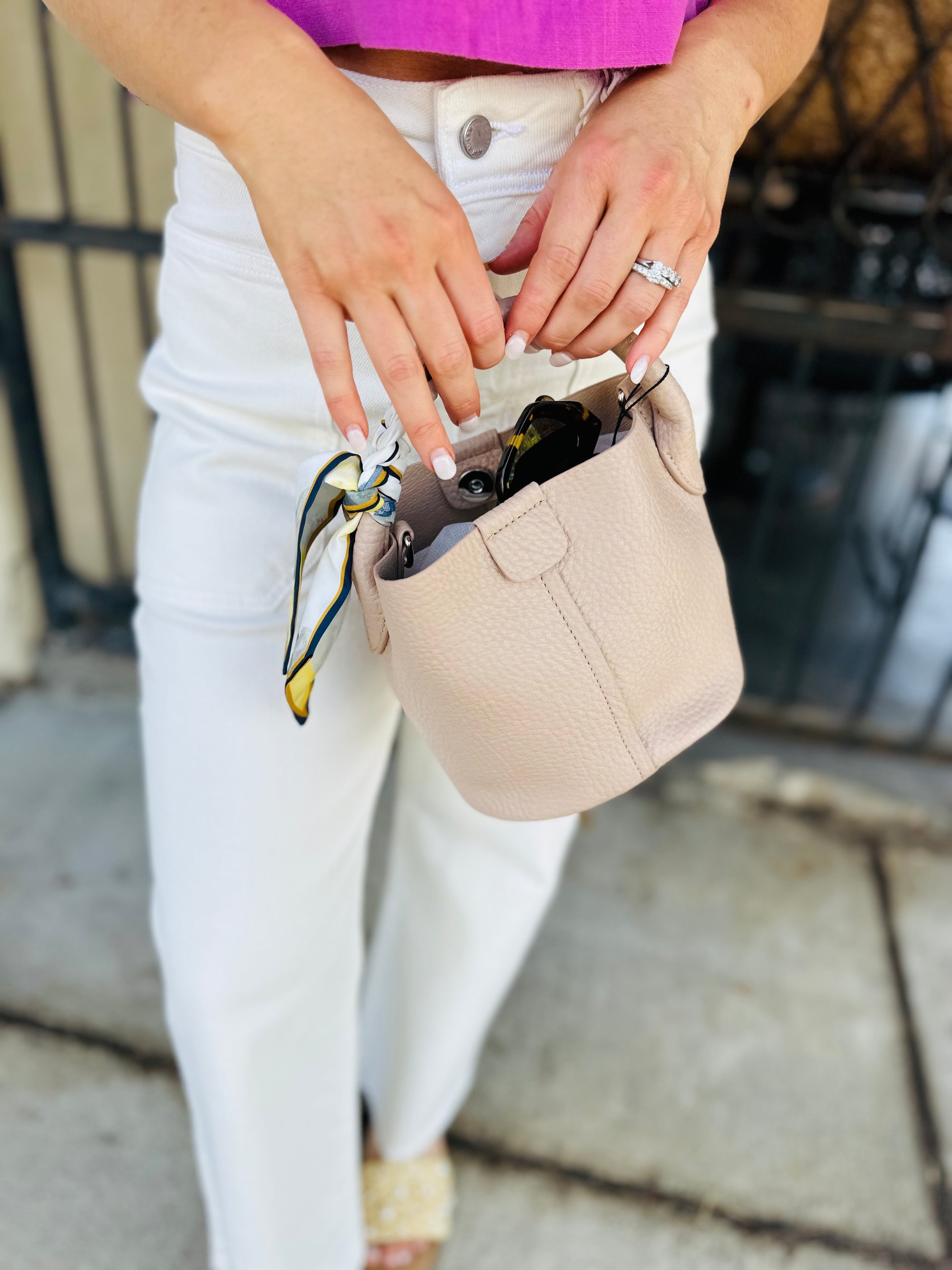 Rock the ultimate chic look with the Shelley Crossbody Bag in beige. With a removable pouch insert and adjustable crossbody strap, this bag can be worn on your shoulder, or on your forearm or in hand with the short strap. Don't miss the opportunity to up your style game with this versatile and trendy bag.