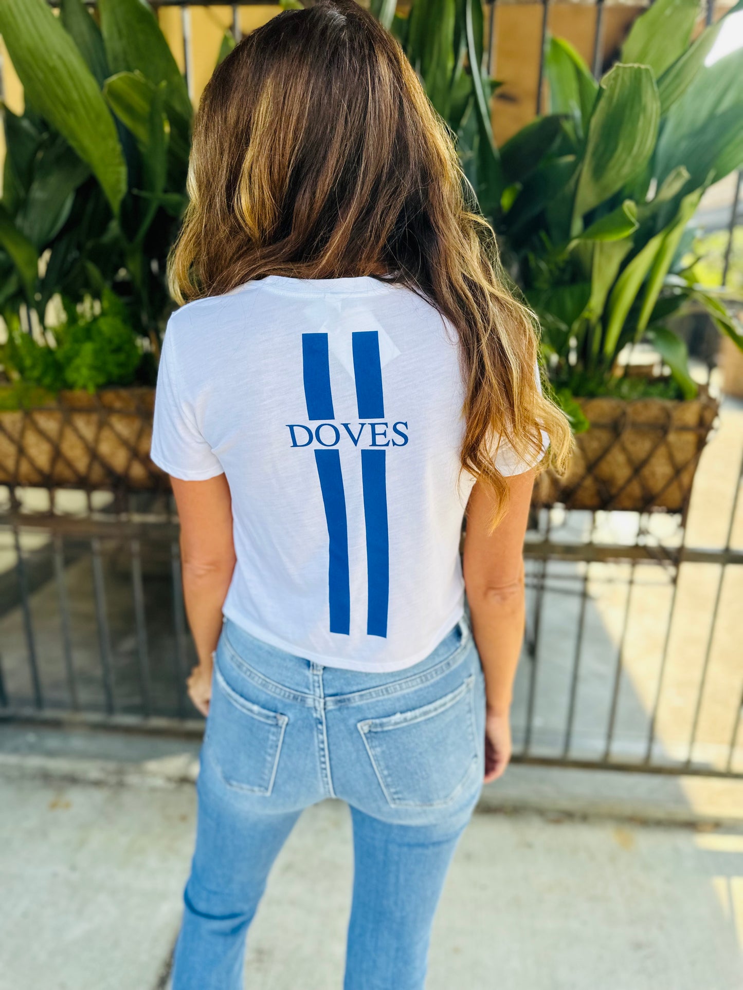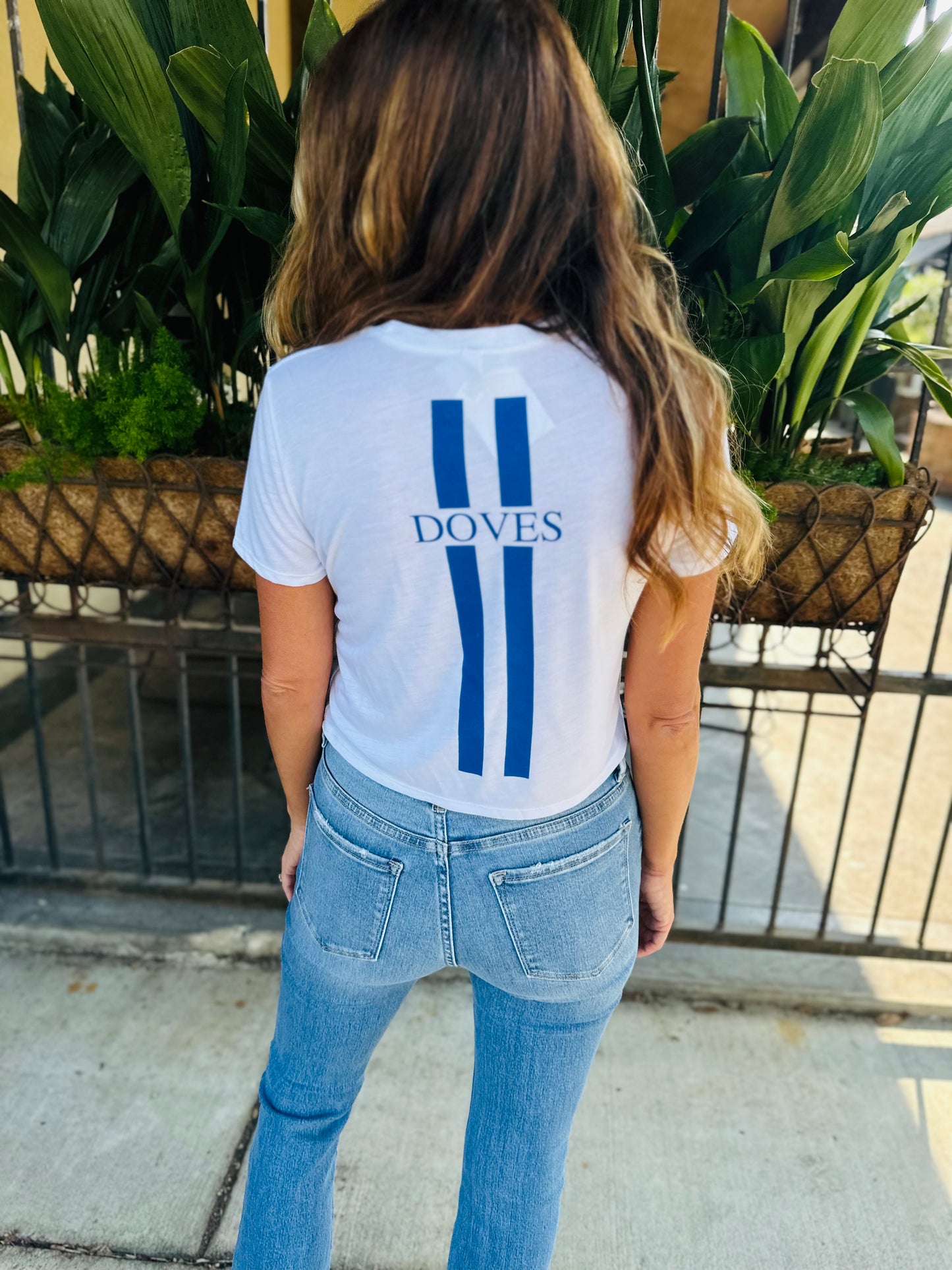 Get game day ready with SSA Crop Tee in White! This playful semi-cropped tee is perfect for showing off your team spirit. This tee hits at the waist for a stylish and comfortable fit. GO DOVES!!!!