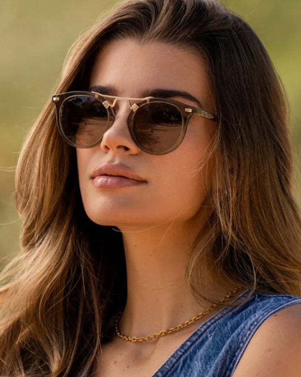 POLARIZED sunnies!!! When it comes to making a statement, Skyler’s got it covered. This sophisticated circular shaped floating frame is joined by a detailed gold wire nose bridge for a look that’s impeccably unique and ultimately stylish.