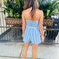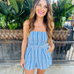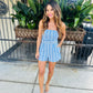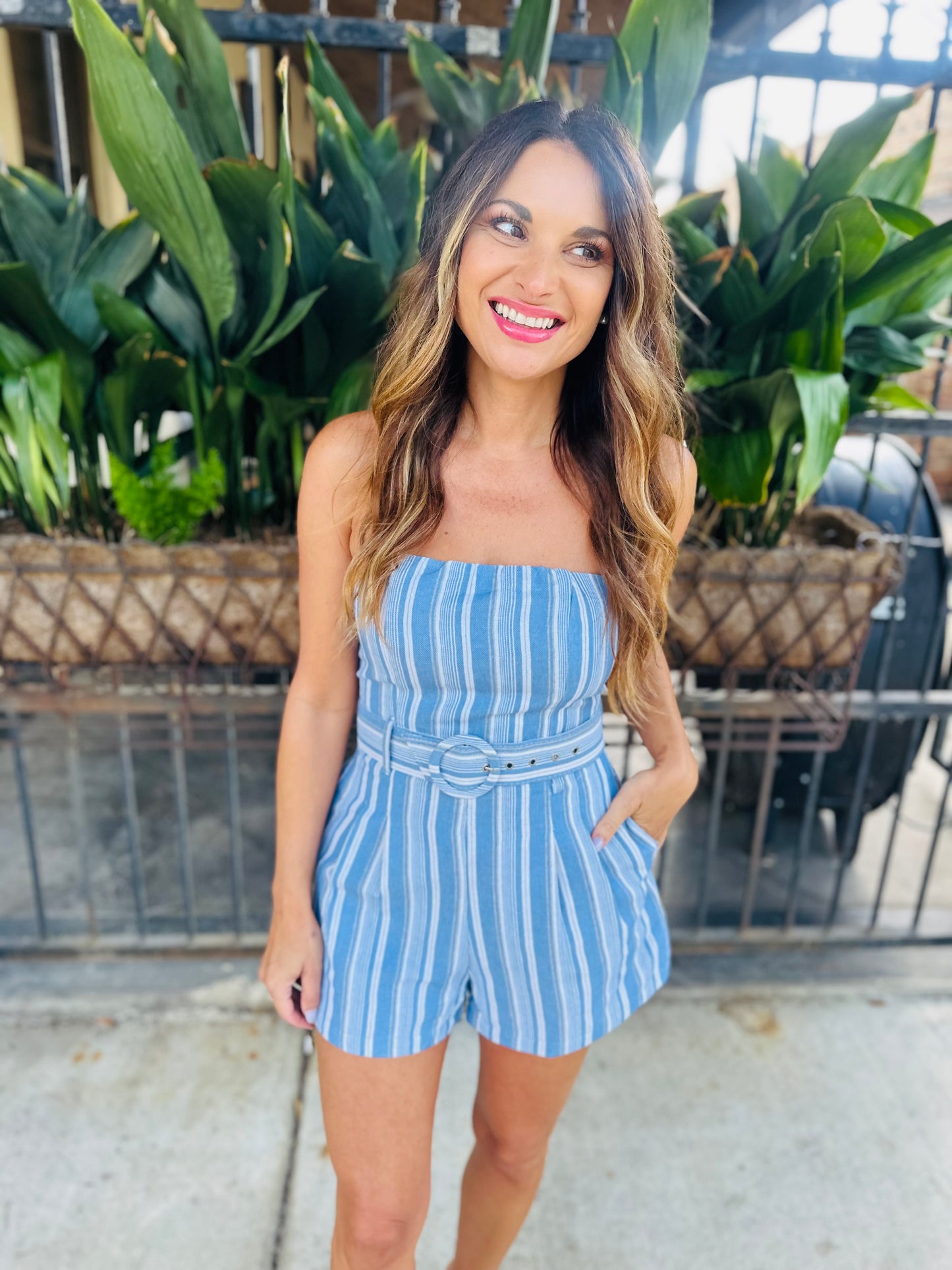 Introducing the Taysom Belted Romper in refreshing blue and white! Giving a nautical vibe this romper is perfect for warm weather. With its playful design and comfortable fit, it's a must-have for any fashion lover. Upgrade your wardrobe now with our Taysom Linen Romper!