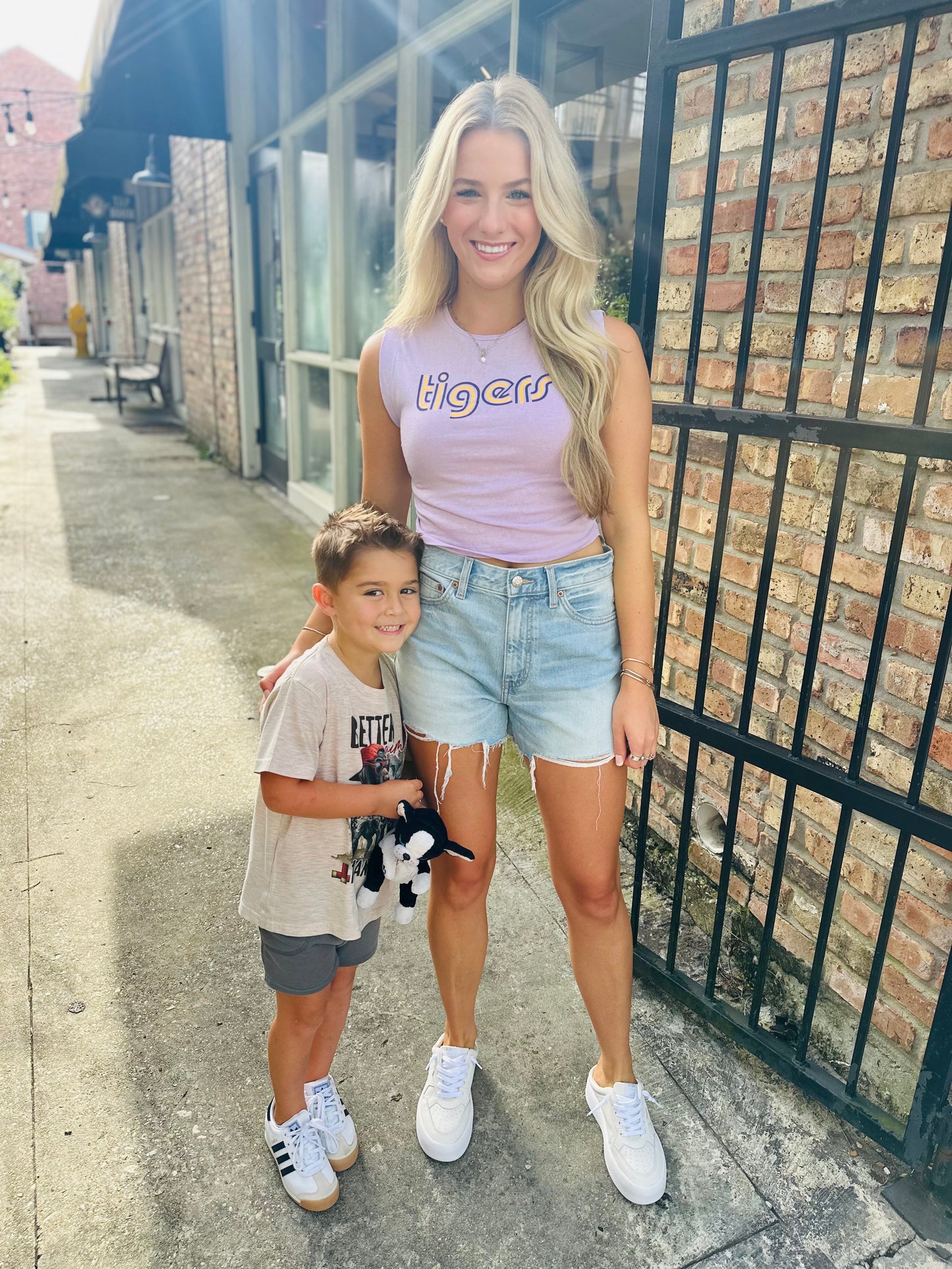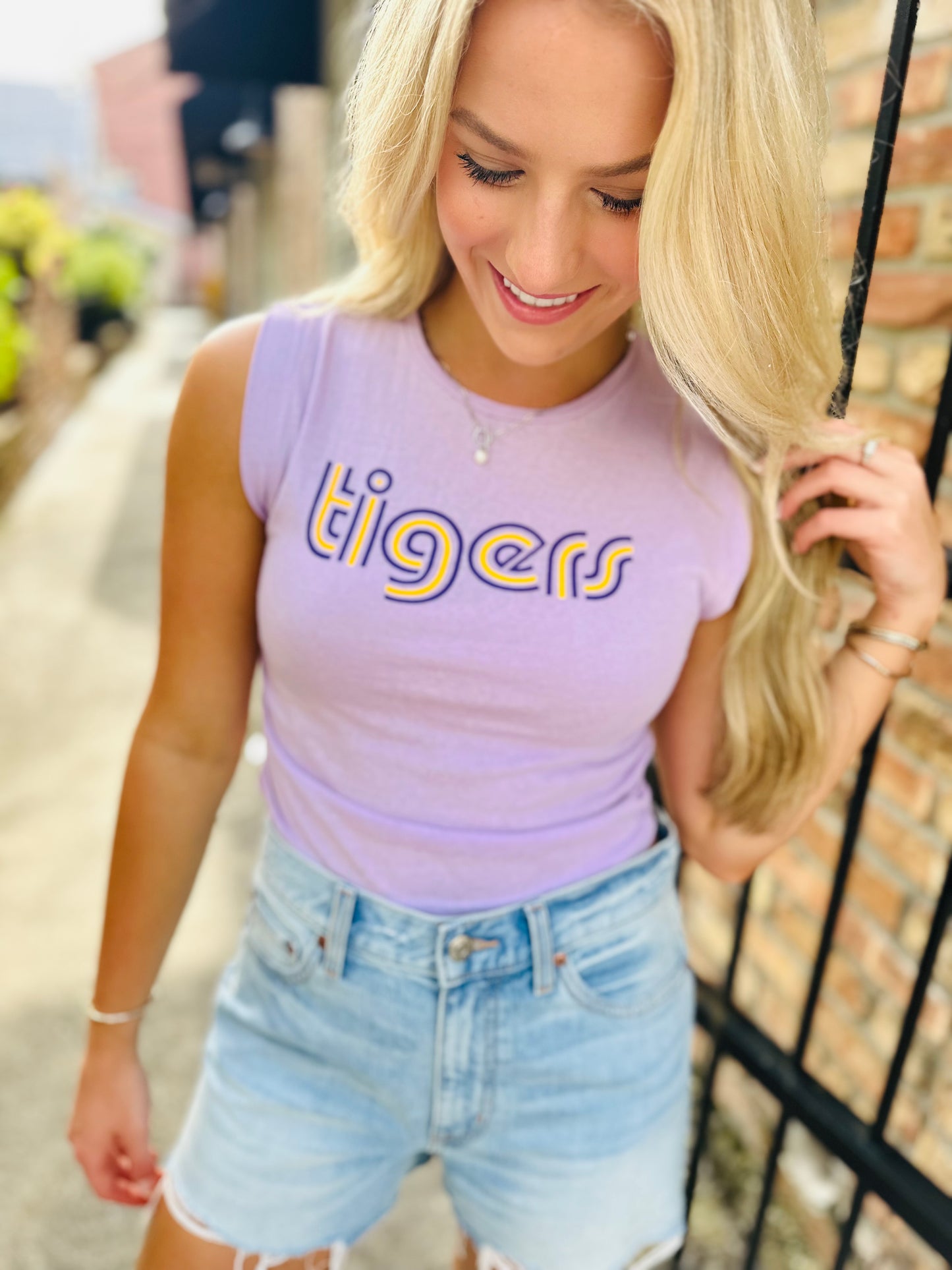 Make a statement on LSU gamedays with our playful Tigers Ruched Tank in Lavender. The ruched detailing adds a quirky twist to this must-have gameday top. Show off your team spirit in style without taking yourself too seriously. Geaux Tigers!