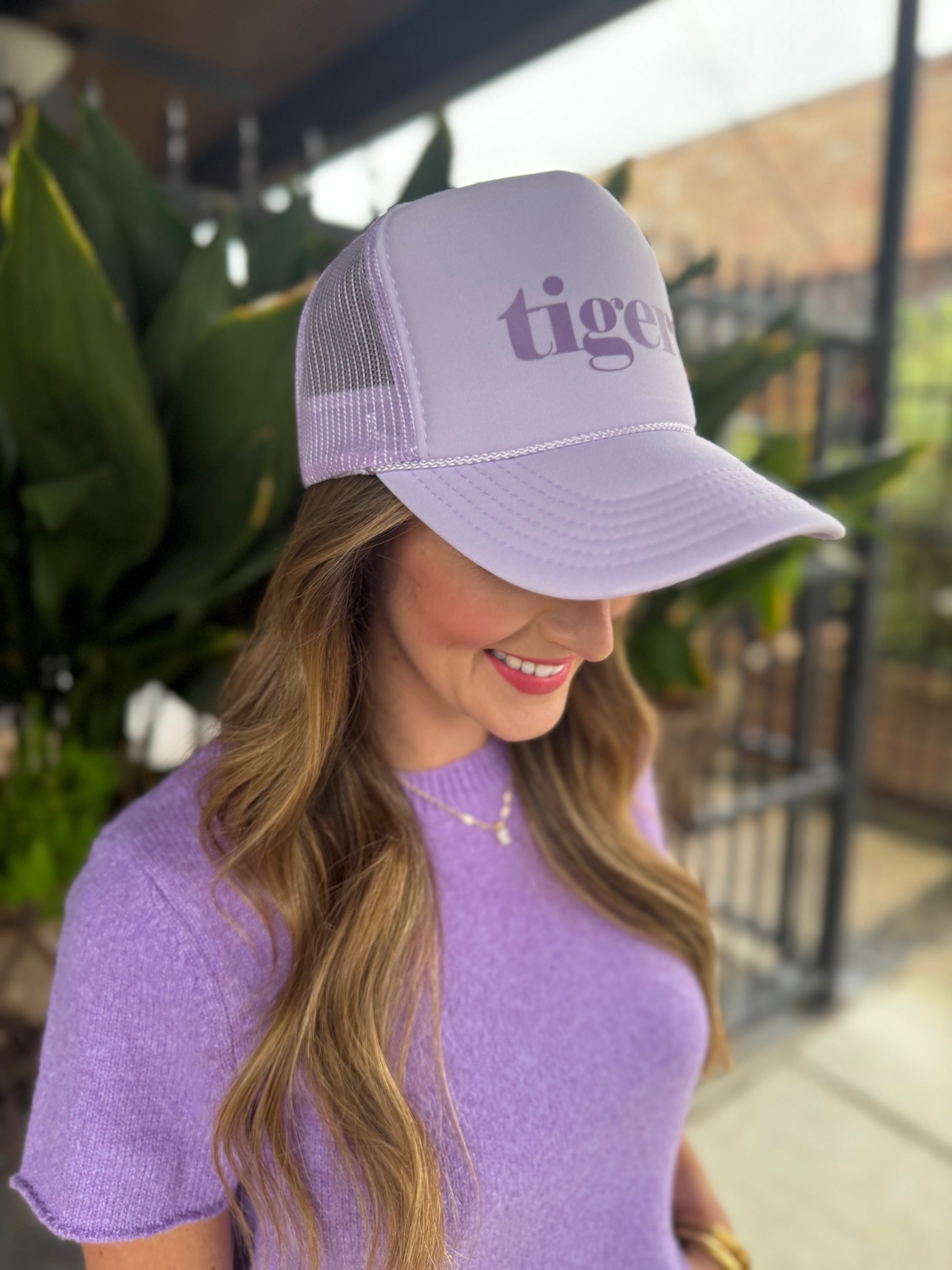 Stay stylish with our Tigers Trucker Hat in lavender! Whether you're cheering on your team at the game or at a tailgate party, this hat has got you covered. And the best part? It fits everyone. Grab yours now!