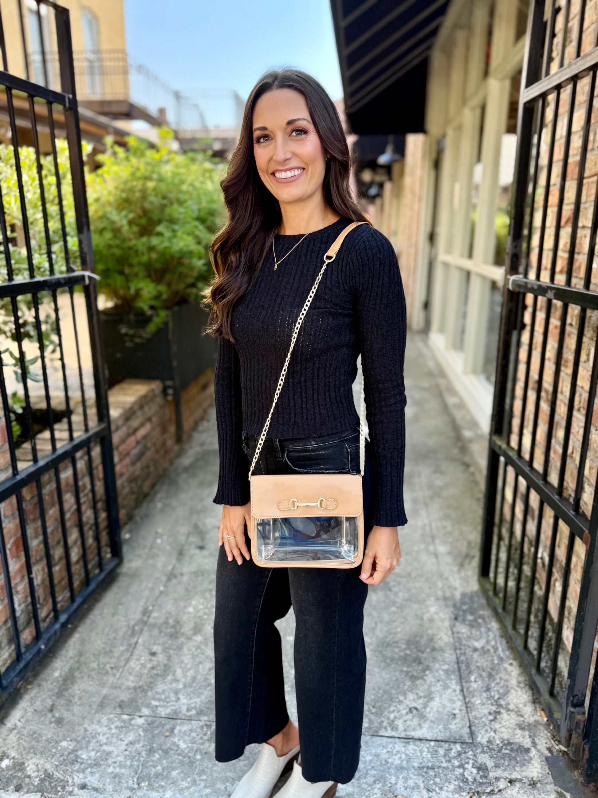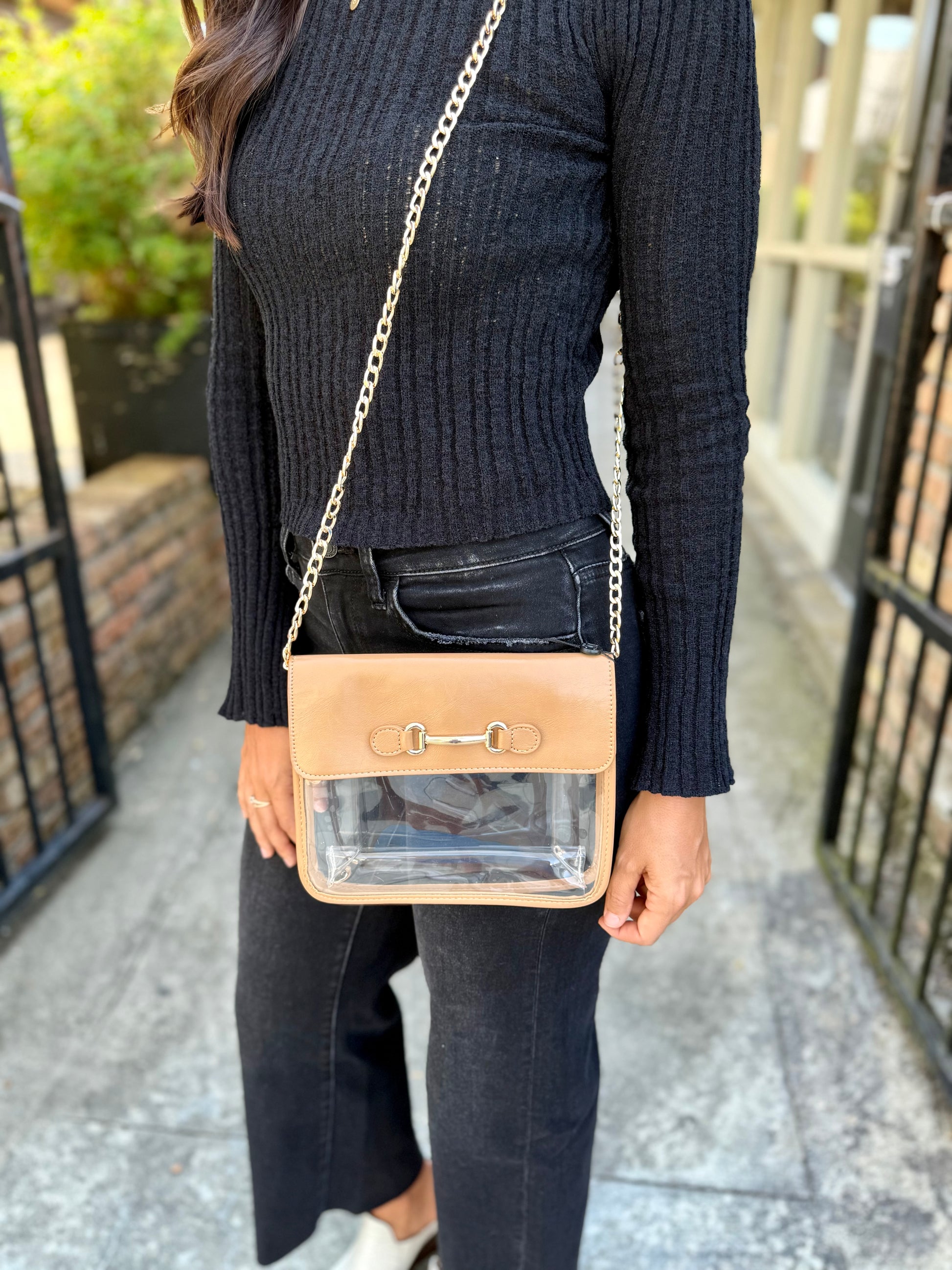 Unleash your inner fashionista with the Travis Clear Stadium Bag in the stunning beige color. This sophisticated bag not only adds a touch of glam to any outfit, but it also meets the required standards for stadium and concert entry. With its clear design and stylish gold hardware, you'll never have to sacrifice fashion for functionality again.