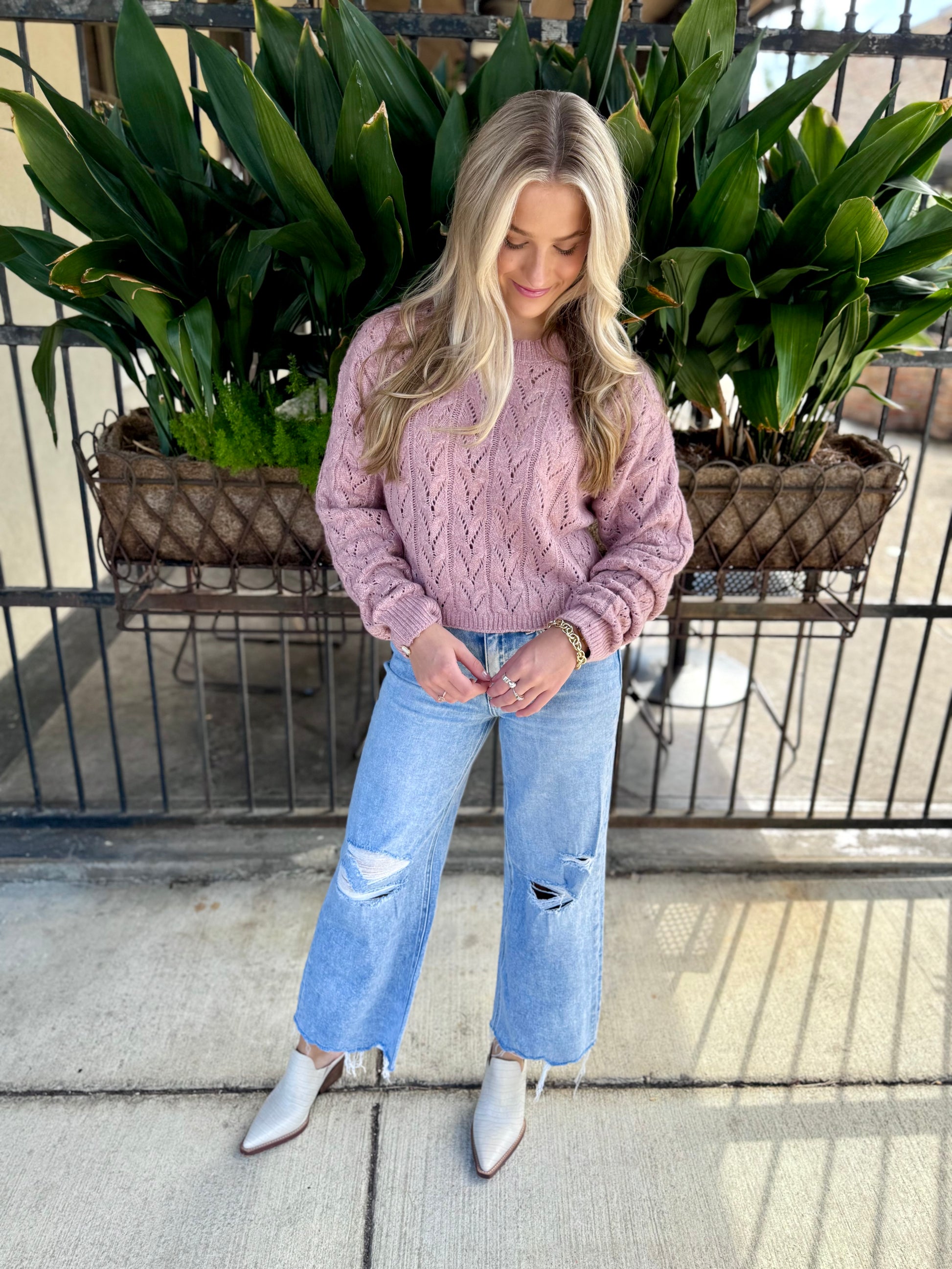 Cozy up in the Wisteria Cable Sweater—lightweight and just the right amount of cropped for a relaxed, effortless vibe. Its vibrant, warm hue adds a cheerful pop to any outfit, while the soft fabric blend keeps you comfortably snug without weighing you down. Perfect for layering or wearing solo on breezy days!