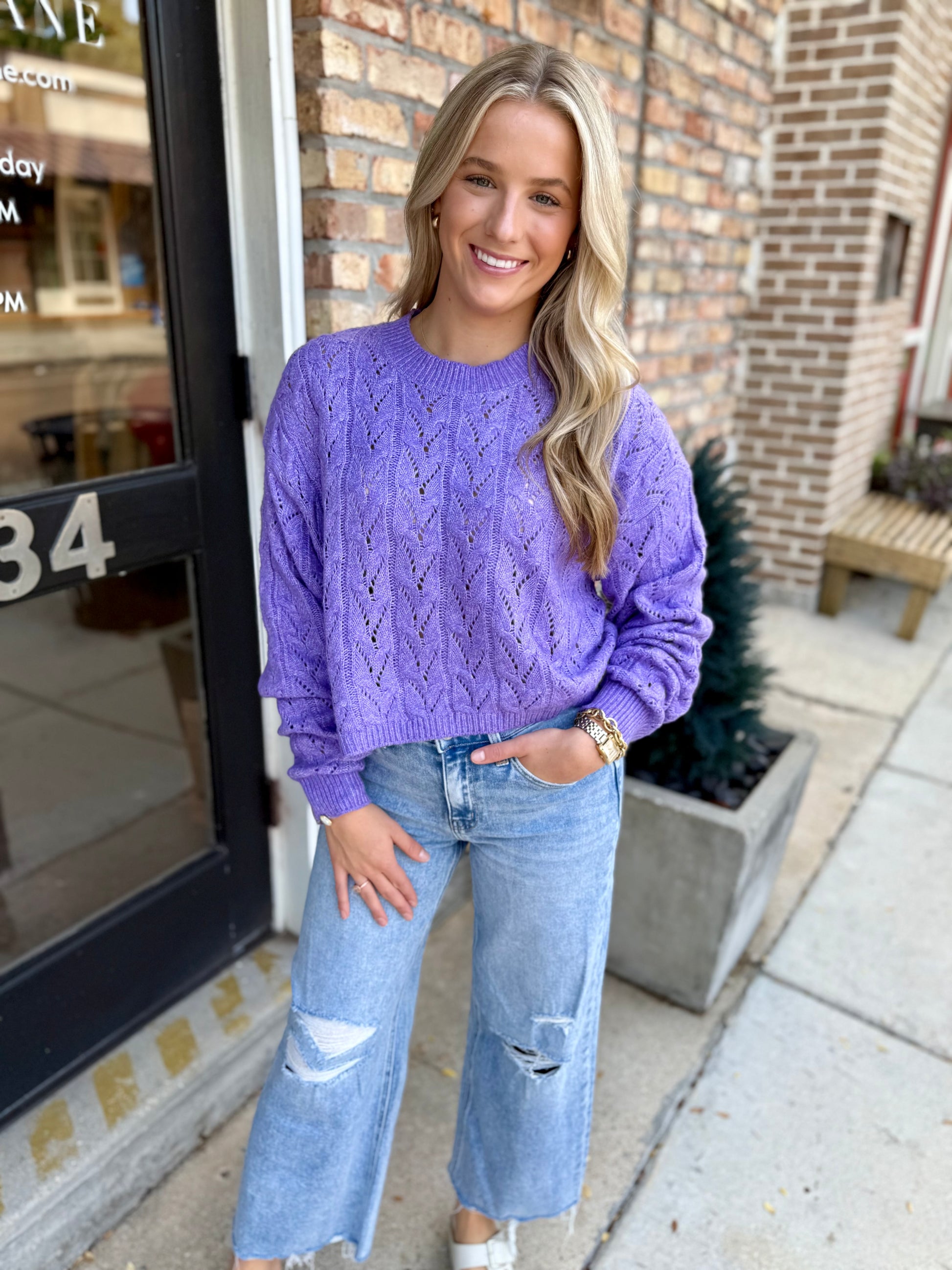 Cozy up in the Wisteria Cable Sweater—lightweight and just the right amount of cropped for a relaxed, effortless vibe. Its vibrant, warm hue adds a cheerful pop to any outfit, while the soft fabric blend keeps you comfortably snug without weighing you down. Perfect for layering or wearing solo on breezy days!
