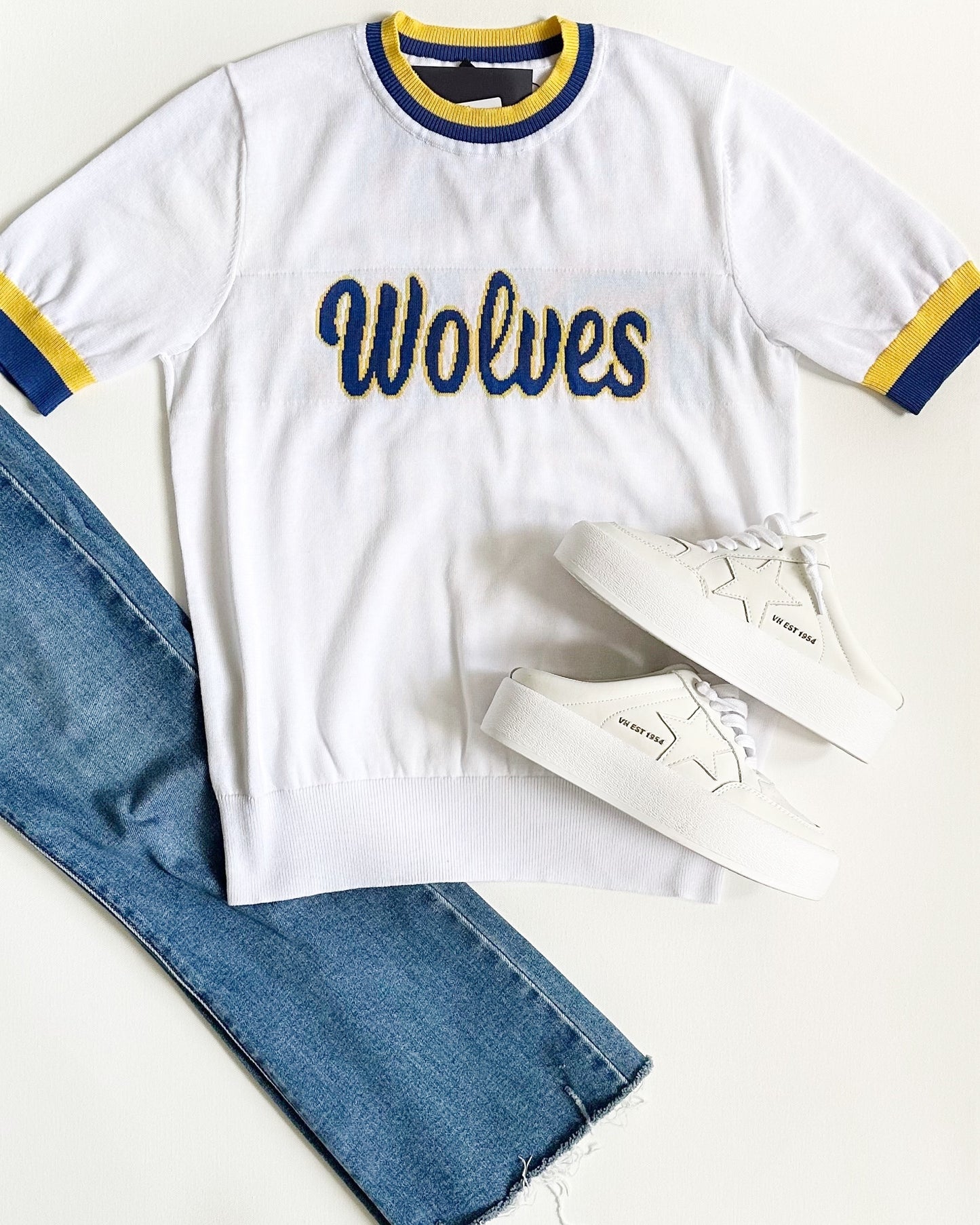 Show off your school spirit with the St. Paul's Wolves Sweater Top. Perfect for gameday and cheering on your team this top features the Wolves in script on the front. Get your paws on one today!