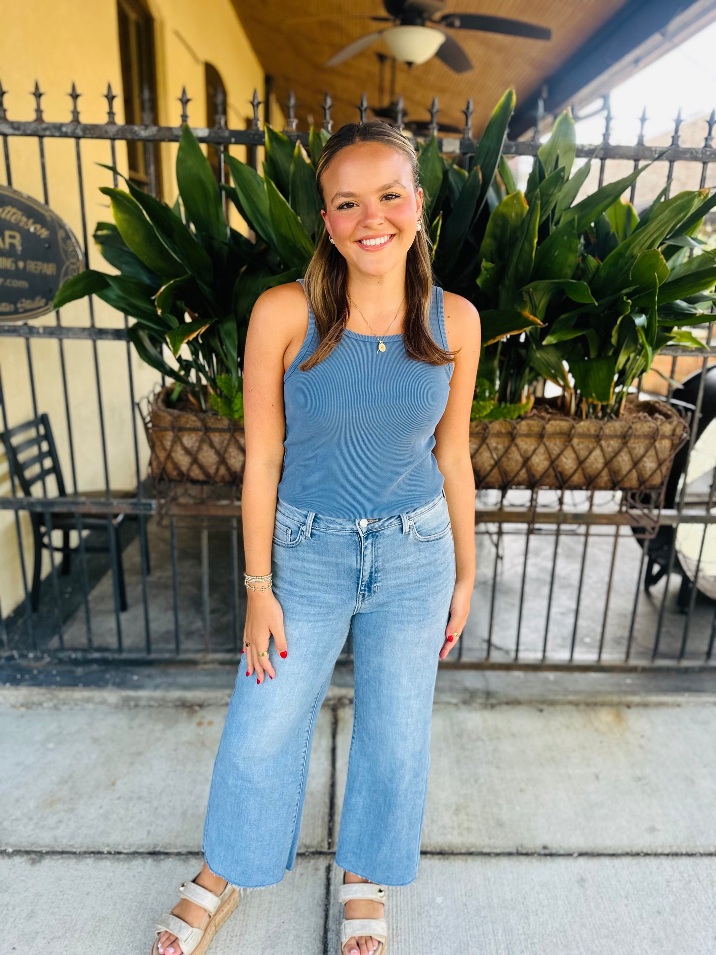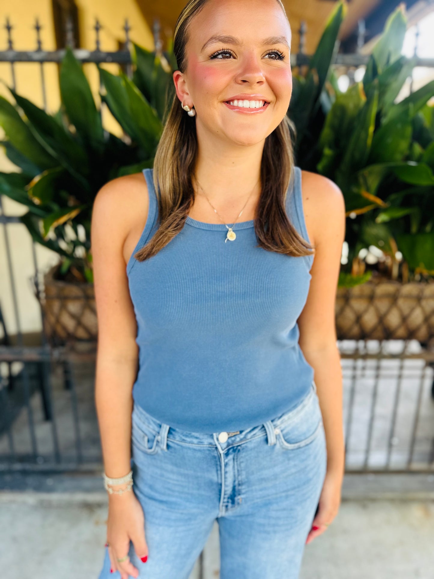 Soft, stretchy, and endlessly wearable, this fitted scoop neck tank is crafted from our comfy Feather Rib fabric. With wide straps and a versatile length that’s perfect tucked or untucked, it’s a must-have for any day of the week.