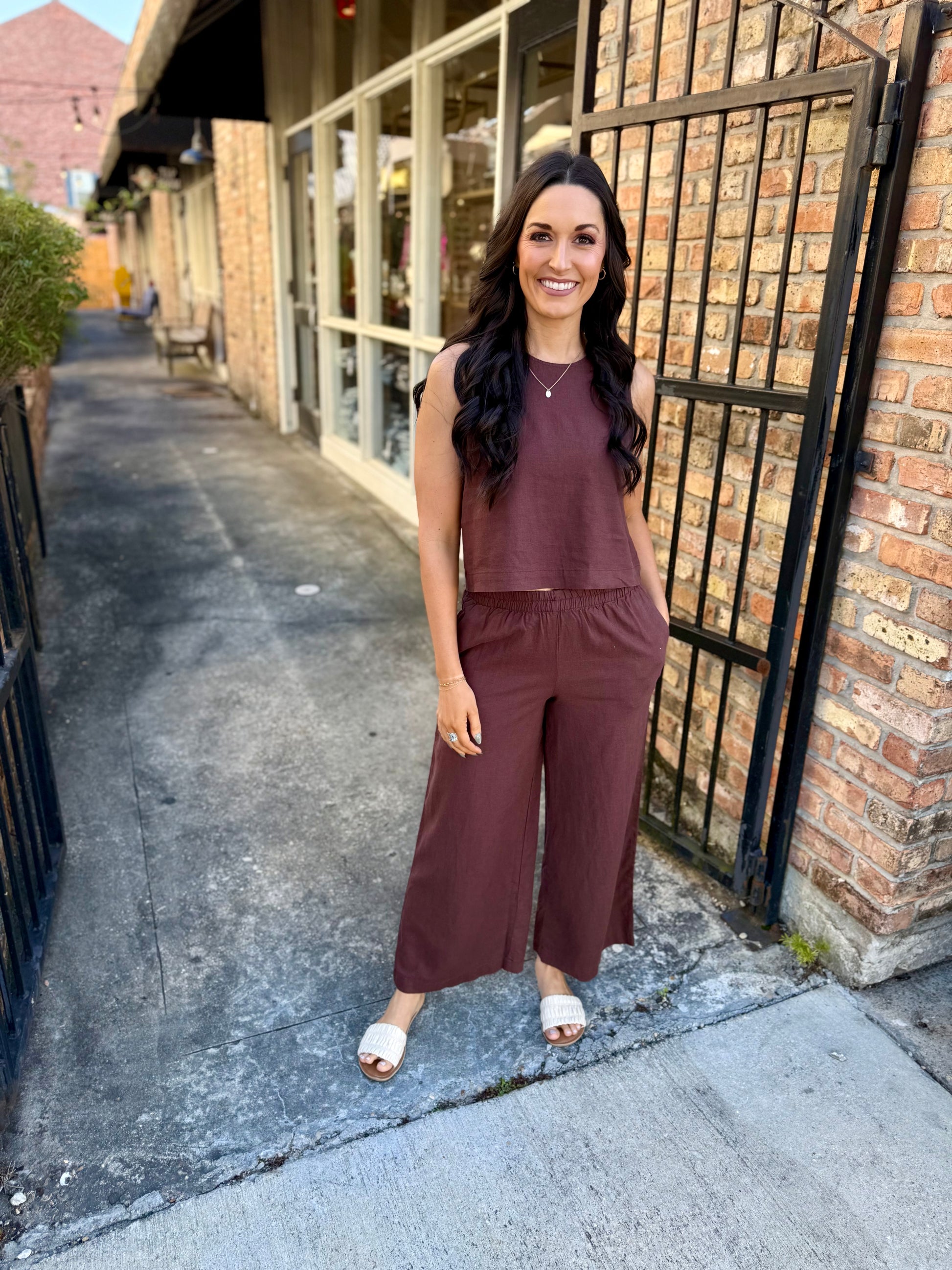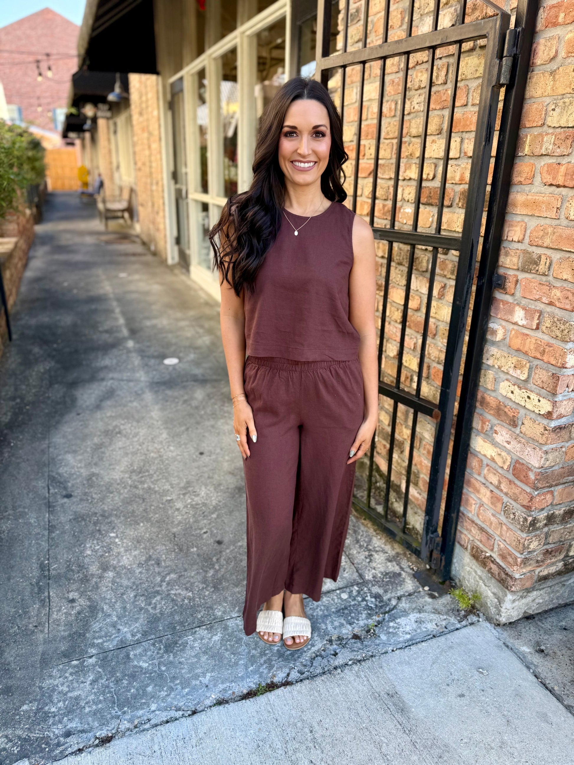 Detailed with an elastic waistband, side seam pockets, and washed linen blend fabric, these high rise pants will be a forever staple in your wardrobe. Make it a set with the Sloane Linen Top.