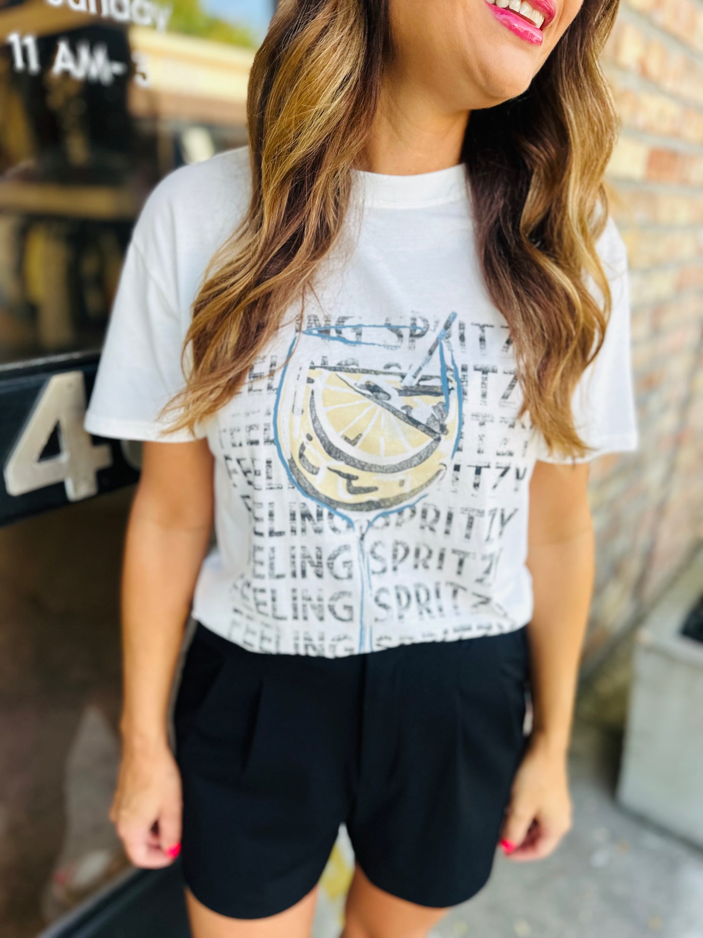 Casual, cool, and ready for fun, this laid-back tee brings the vibes with a "Feeling Spritzy" screen print and a playful cocktail graphic. Made from soft 100% cotton jersey with an easy, relaxed fit, it's a tee you'll reach for season after season.
