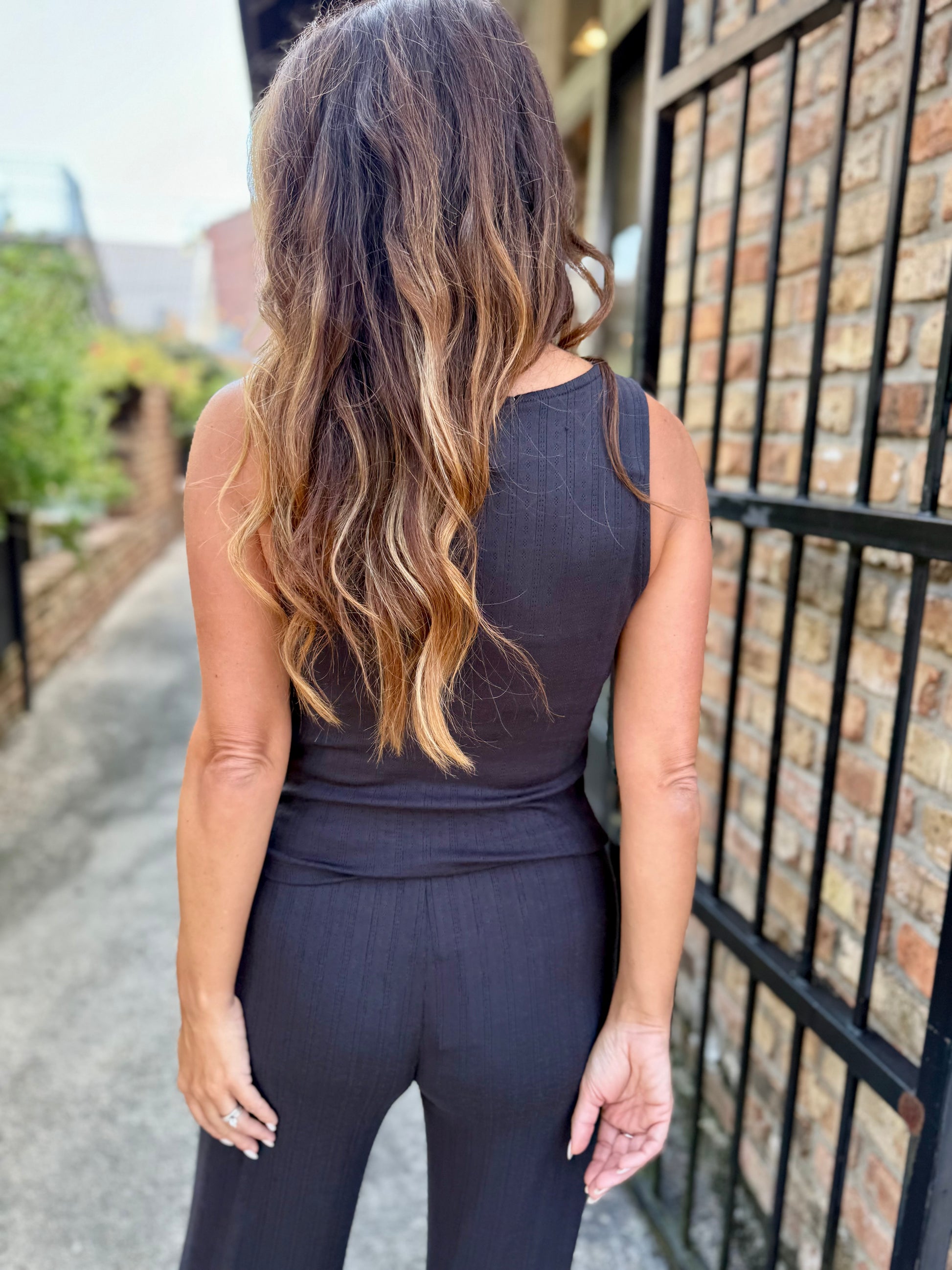 Emily typically wears a size small in tops and a size small in bottoms if the item runs true to size.