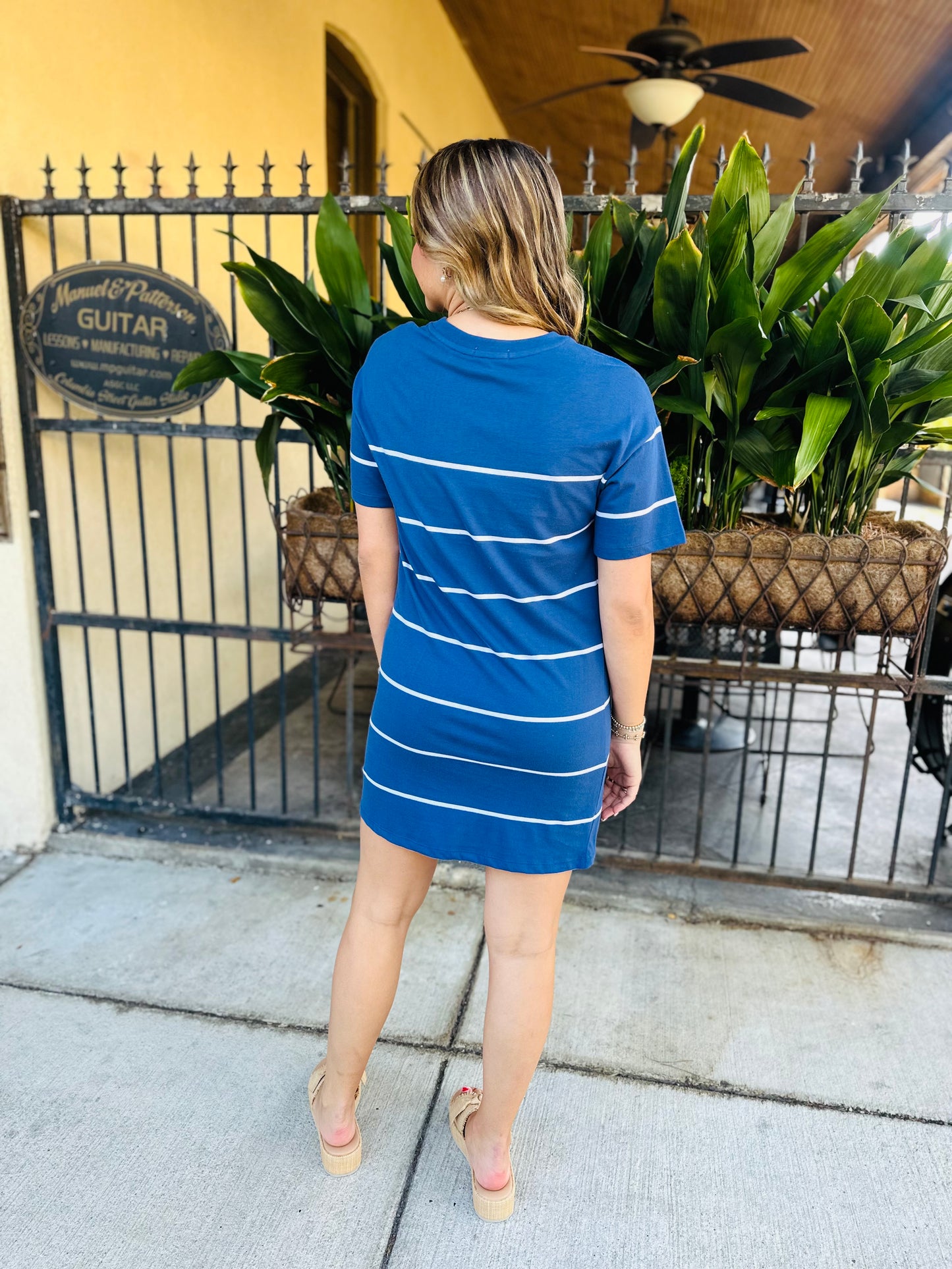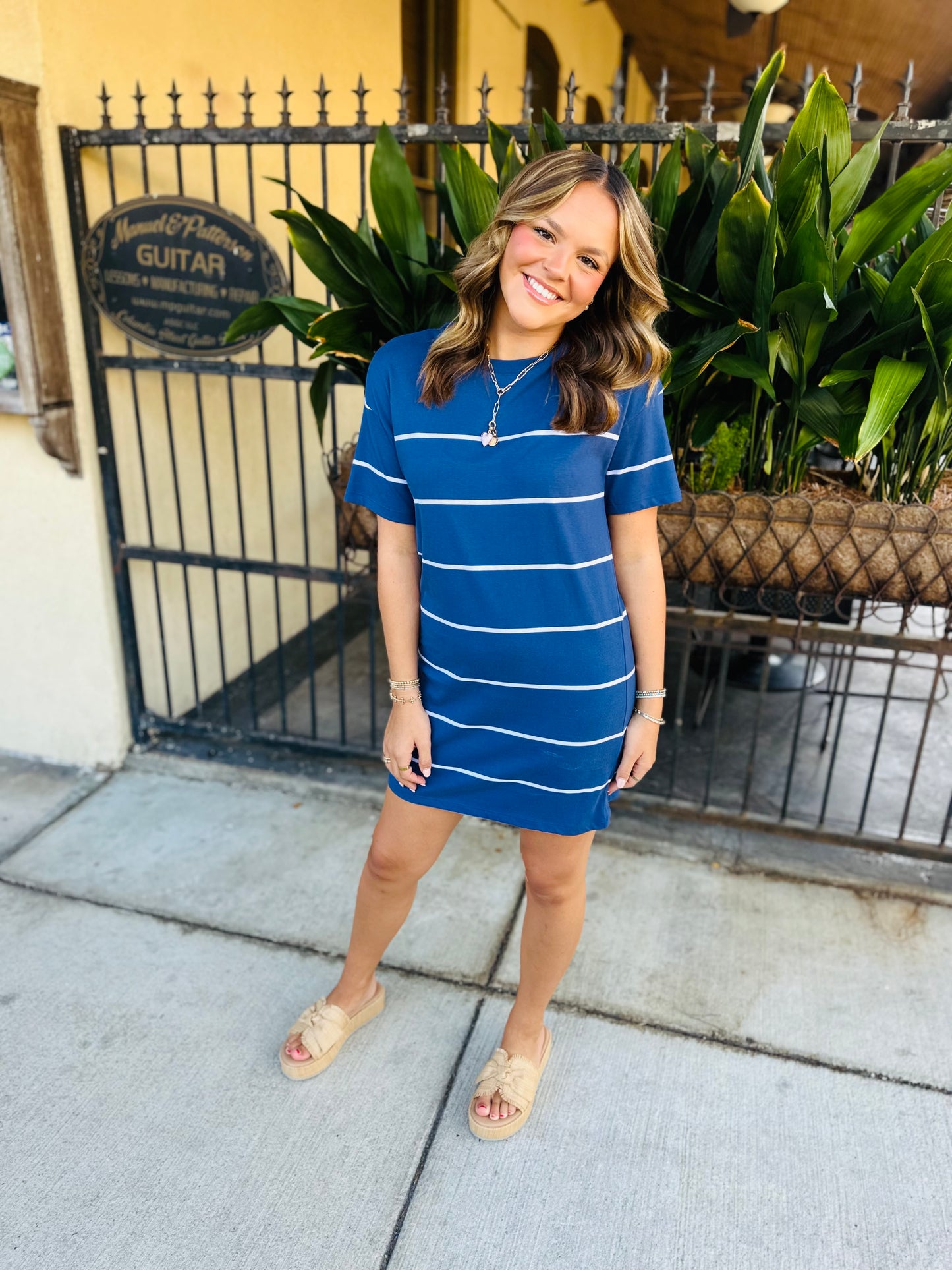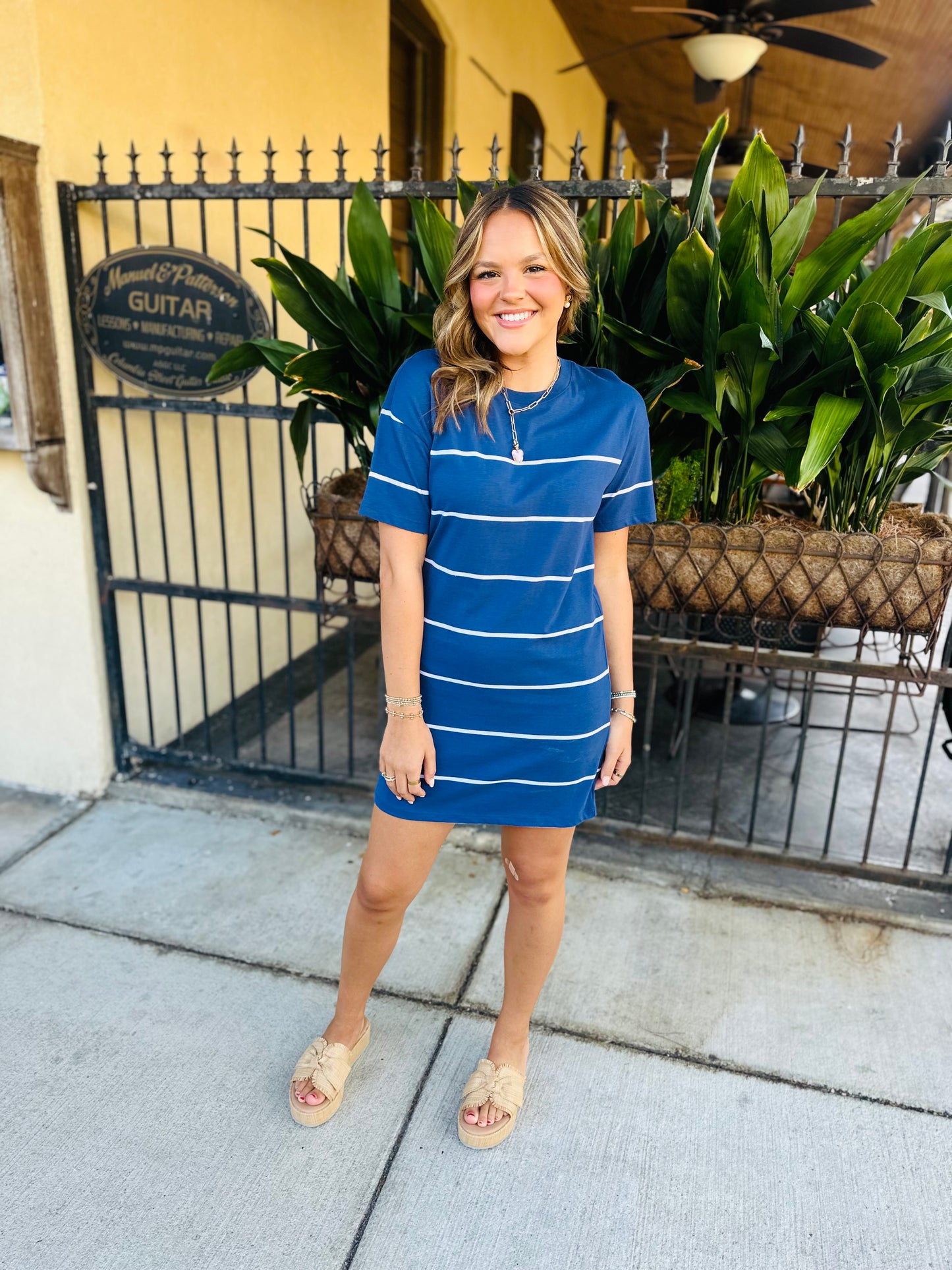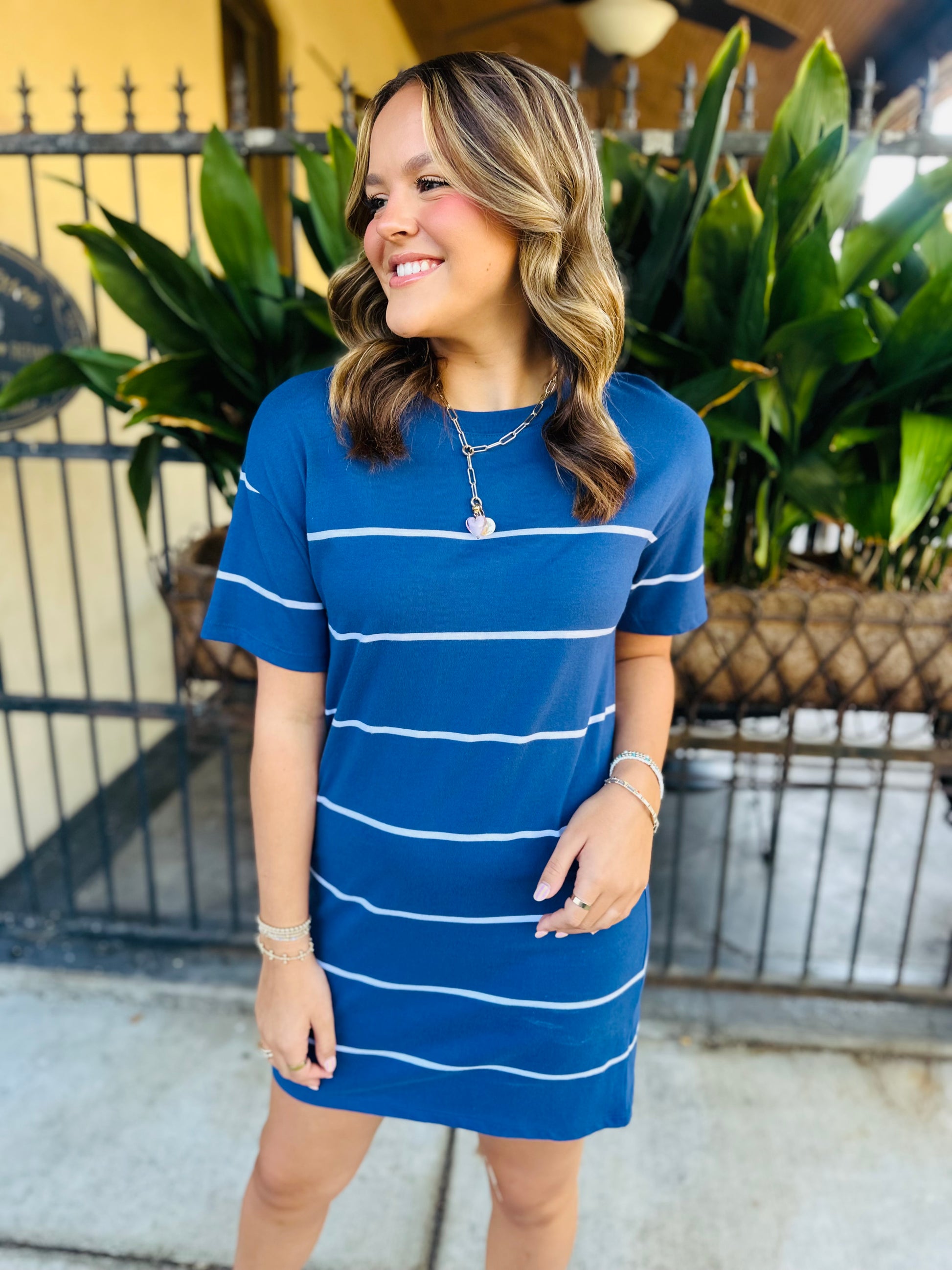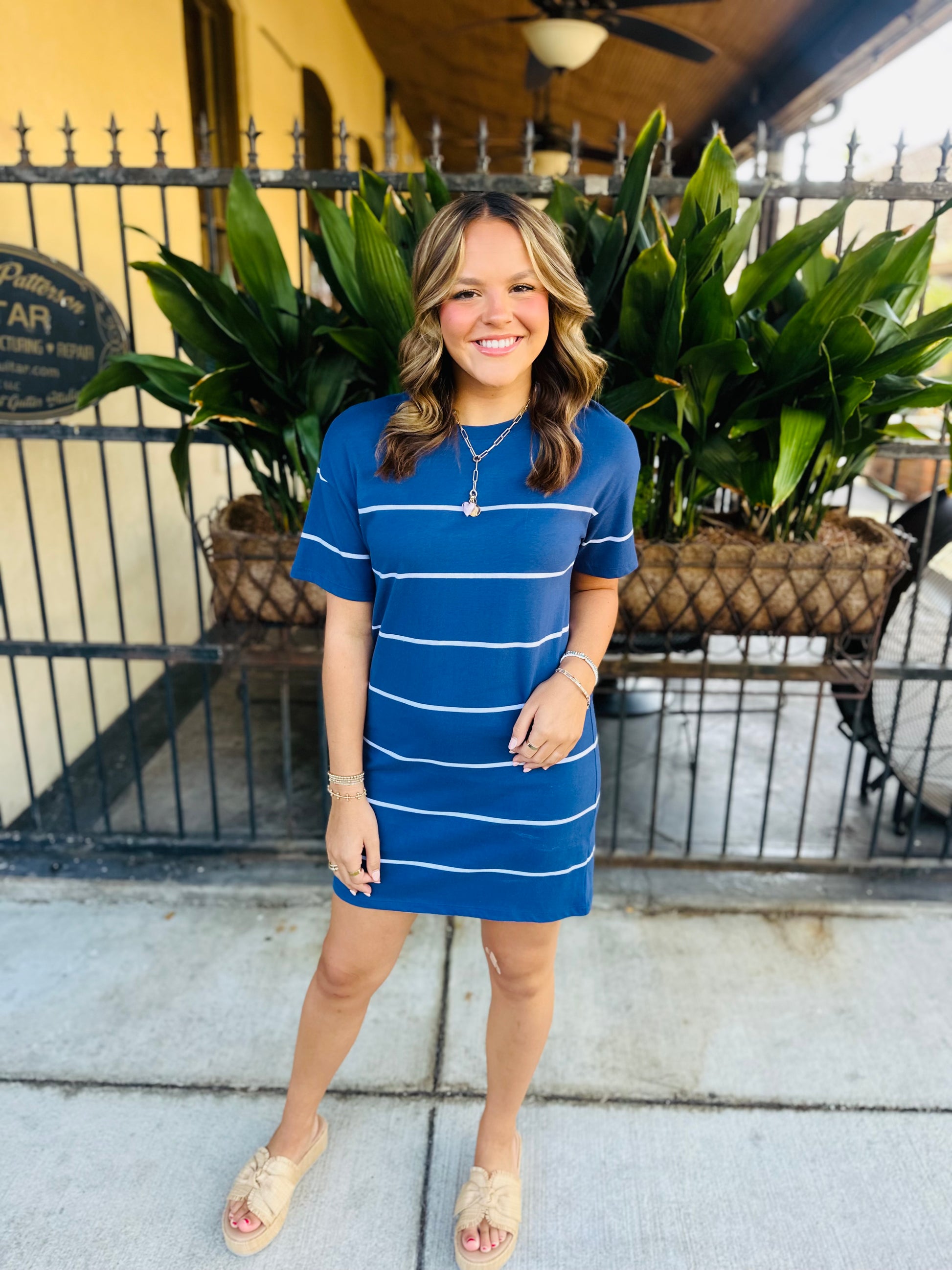 Laid-back and beach-ready, this striped tee dress is made from soft cotton jersey with a relaxed fit. The yarn-dyed stripes and classic crew neck keep it timeless and easy to wear anywhere.
